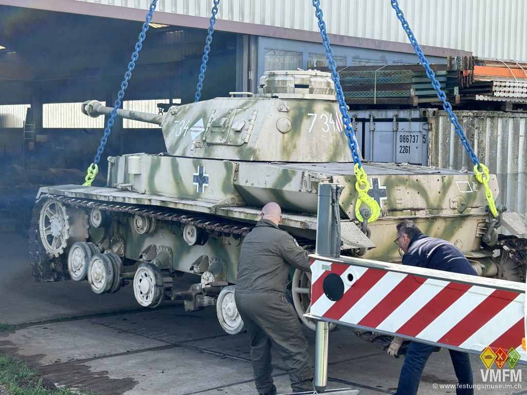 Am 22. November 2023 und am 25. März 2024 sind die ersten 13 von insgesamt 25 Objekten der Sammlung des aufgelösten Panzermuseums Thun mit verdankenswerter Unterstützung der Schweizer Armee im Militärmuseum Full eingetroffen.