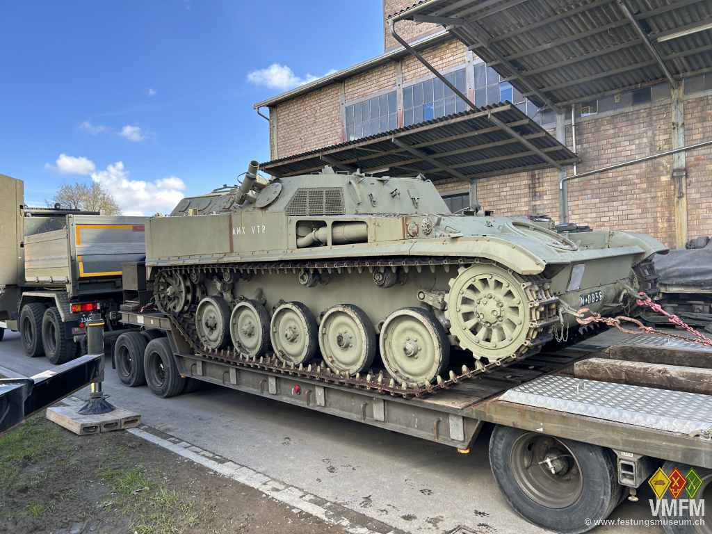 Am 22. November 2023 und am 25. März 2024 sind die ersten 13 von insgesamt 25 Objekten der Sammlung des aufgelösten Panzermuseums Thun mit verdankenswerter Unterstützung der Schweizer Armee im Militärmuseum Full eingetroffen.