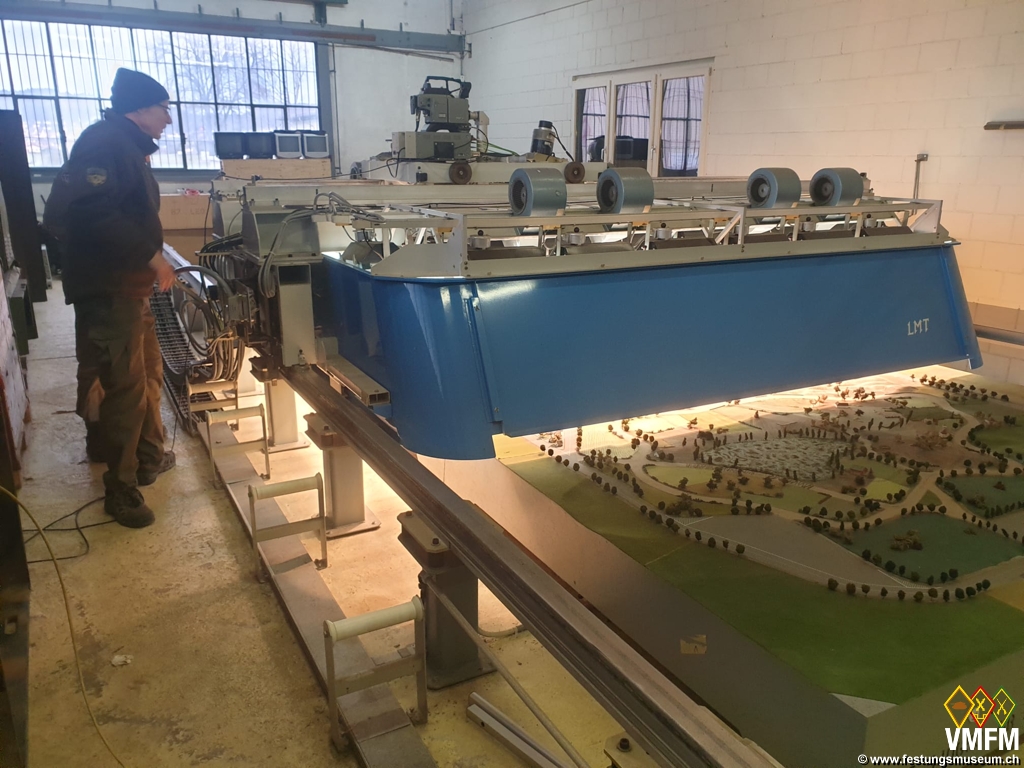 Das engagierte Team der Museumshelfer Gerold Handschin, Michael Salathé und René Demarmels konnte sich aber damit nicht abfinden. Unter Einsatz vieler hundert Arbeitsstunden unterzogen sie die Anlage einer gründlichen Analyse, spürten Defekte auf und ersetzten nach und nach ausgefallene Komponenten möglichst originalgetreu. Größter Knackpunkt bildete der defekte Hauptrechner aus den 1970er-Jahren. Dieser musste, aufgrund nicht mehr verfügbarer Ersatzteile, ersetzt werden. Hierzu wurde ein neuer Hauptrechner konfiguriert und an die bestehende Anlage angepasst. Die in Papierform vorhandenen Programmteile des alten Rechners wurden in vieltägiger Arbeit in eine moderne Programmiersprache übersetzt und neu eingegeben. In weiteren Teilschritten wurden Kamera, Bildschirm und Geländebeleuchtung erneuert bzw. ersetzt.