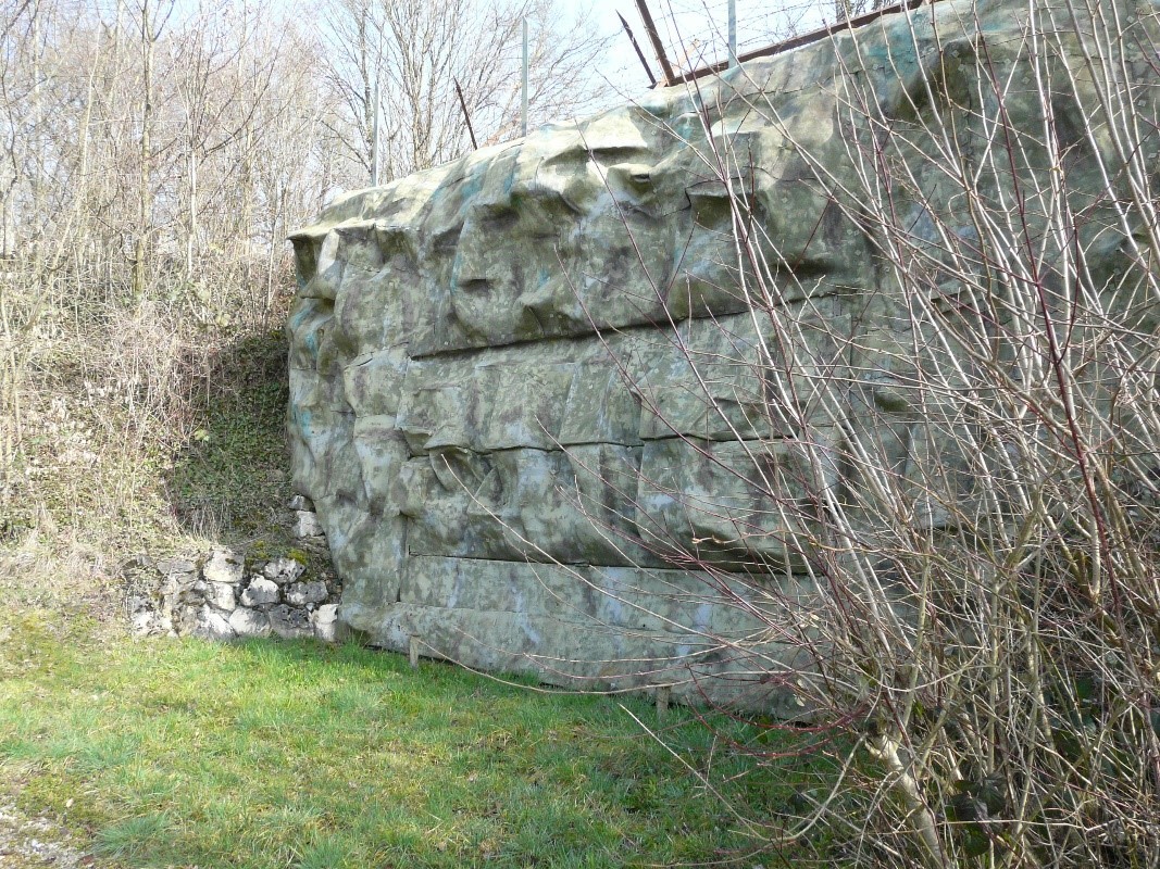 Am Weg befinden sich zwei Geschützscharten. Hier mit geschlossener Felstarnung…