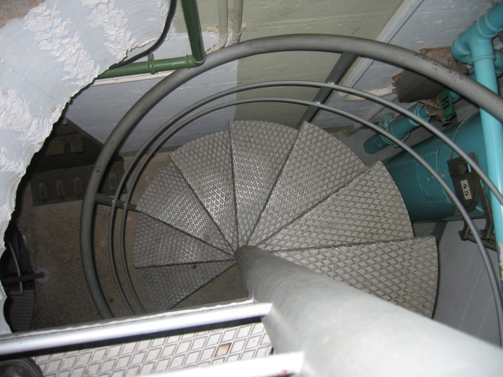 Über eine Wendeltreppe steigen Sie in den vierstöckigen Eingangsbunker