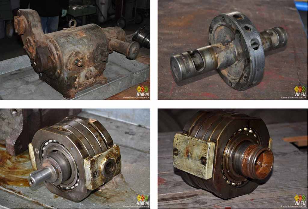 Die meisten Teile des Getriebes waren in einem erstaunlich guten bis sehr guten Zustand, nur ein Laufgehäuse musste wegen zu starker Korrosion der inneren Lauffläche erneuert werden.