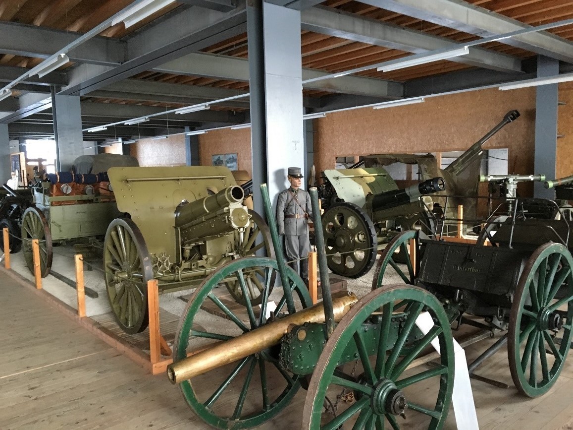 Ein Stockwerk tiefer erwartet Sie eine Ausstellung zur Schweizer Armee: Artillerie, Panzer- und Flugabwehr, Minenwerfer, schwere Munition, Pferd in der Armee und Motorräder