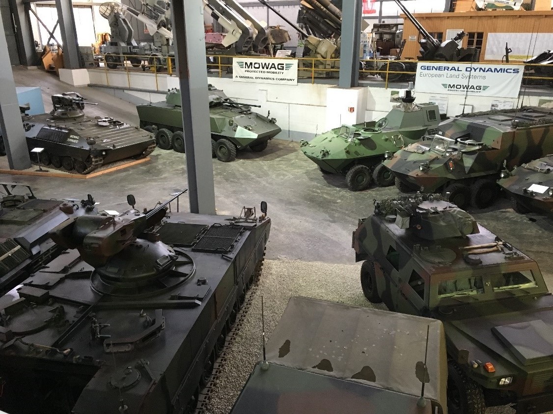 zur unteren Ebene mit der Werksammlung von gepanzerten und ungepanzerten Fahrzeugen der Mowag GmbH Kreuzlingen