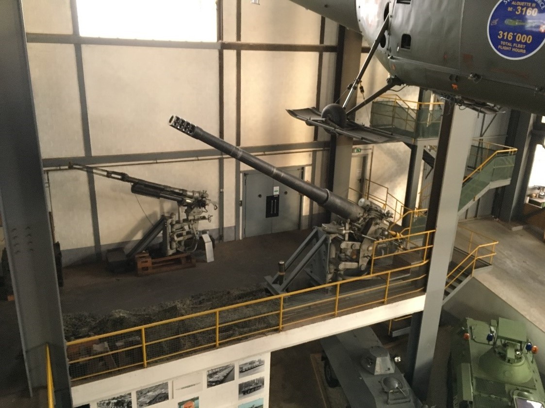und an Geschützen aus Schweizer Festungen und einem Helikopter Alouette III gelangen Sie zum Aufzug.