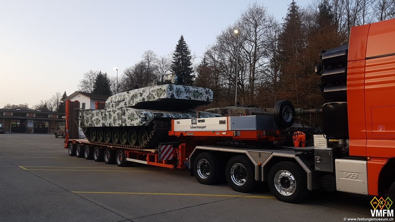 Ende Februar 2021 erhielt unser Museum von der Schweizer Armee zwei interessante, von der RUAG entwickelte Prototypen des Kampfpanzers Leopard 2. Bei einem Fahrzeug mit dem Kontrollschild M+810 handelt es sich um den ersten, von der Firma Krauss-Maffei aus Deutschland gelieferten Leo 2, der 1986 für die Ausbildung von Fachleuten der GRD und der Industrie und 1987 für die erste Offiziersschule mit angehenden Offizieren für den neuen Kampfpanzer verwendet wurde. In der Folge wurde der Panzer für Versuche und Weiterentwicklungen an die Konstruktionswerkstätte Thun und anschliessend an die RUAG abgegeben. Die RUAG erstellte damit einen Prototyp mit Zusatzpanzerung an Wanne und Turm, der jetzt im Museum ausgestellt wird.
